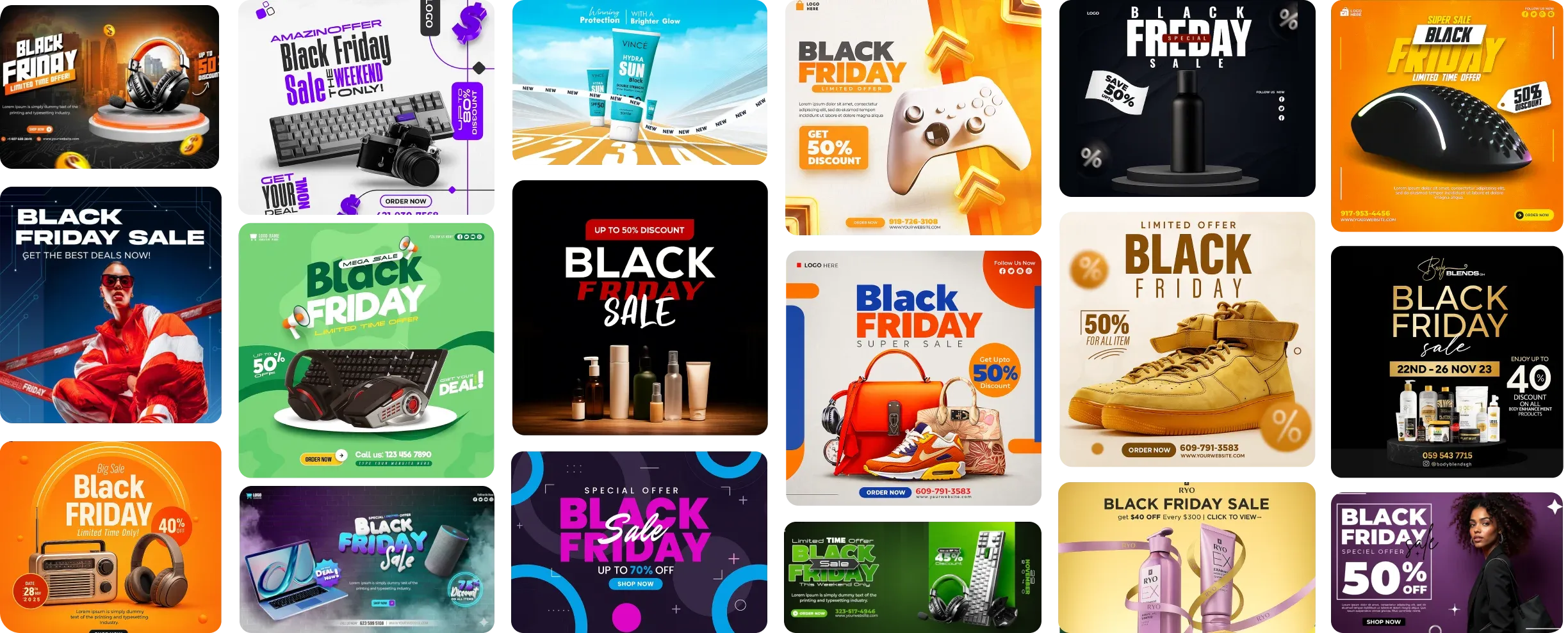 Make your Black Friday campaigns stand out with creative, brand-ready visuals that drive traffic