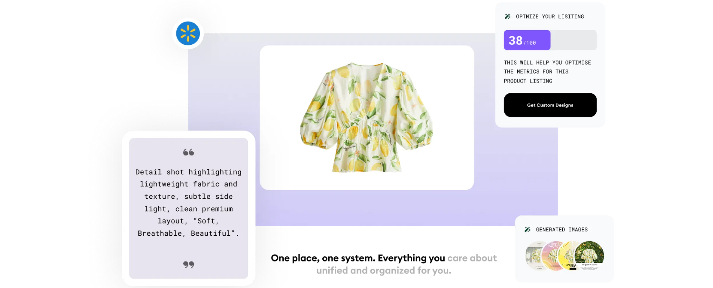 Create platform-ready product images and SEO-rich descriptions to improve visibility, clicks, and listing performance on the Walmart marketplace.